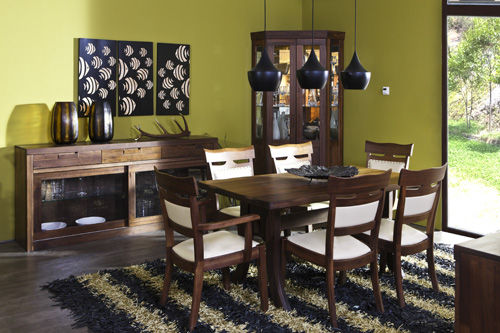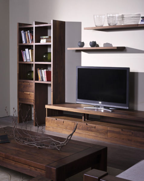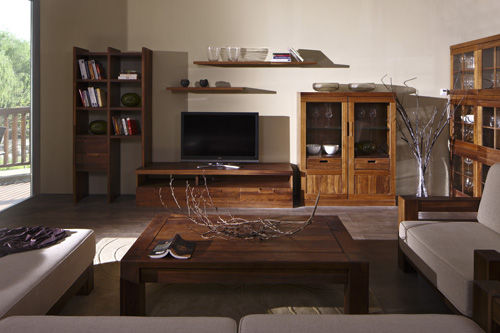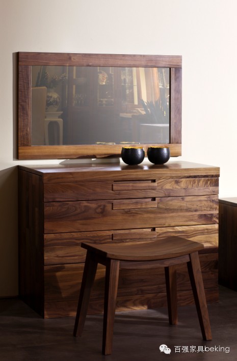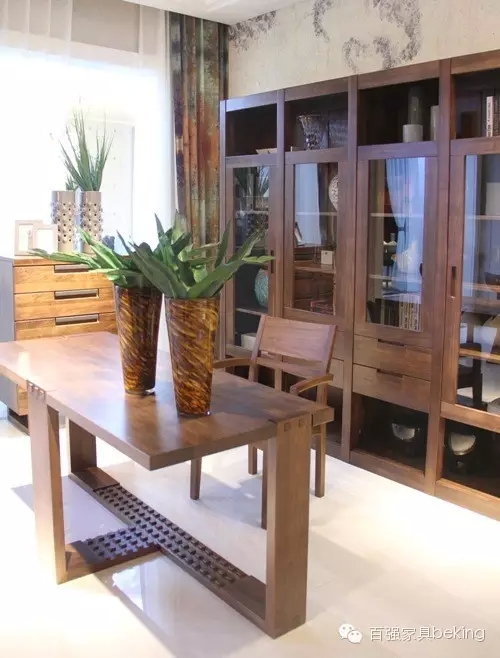 走进新罗马客厅系列,给人一种耳目一新、魅力持久的高品位感觉,这里的一切都带着一些理性的态度,超越了古典的繁琐与现代的简约,后现代主义的风格使其揉合了玻璃、布艺、金属、皮革等多种材料的物理性能,一种沉淀已久的韵味正在蔓延。客厅中摆放的左右结构饰品柜外形方正、端庄,流露出古典与现代的美感,散发高贵的气质;内置LED照明方便取物,映衬出柜子强烈的木质感,如同一座神秘而庄重的城堡,古韵悠长;黑胡桃木丰富的纹理层次感,使柜子更有灵性和韵味。