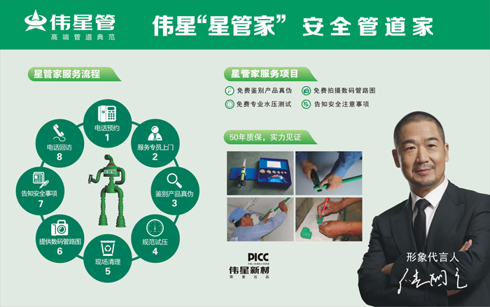伟星新材秉持“以品牌统领营销、以服务支撑品牌、以品牌提升价值”的经营理念,逐步建立遍布全国的营销网络,着力打造诚信共赢的市场服务体系,伟星“星管家”服务在全国获好口碑,伟星传播“健康、可靠、喜悦”的品牌文化。伟星新材将致力于“提高人类生活品质,创建和谐社会空间”,成为有持续发展力的卓越企业。